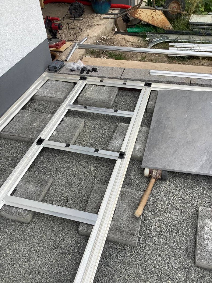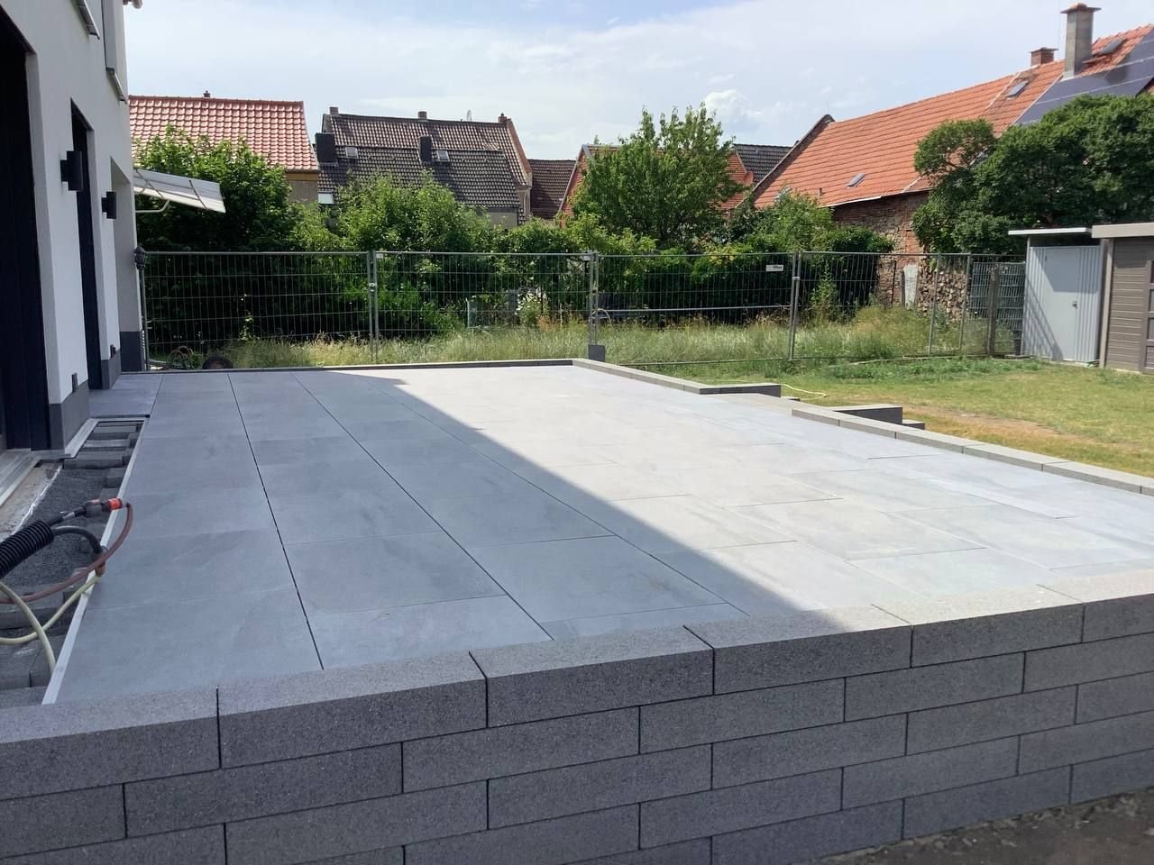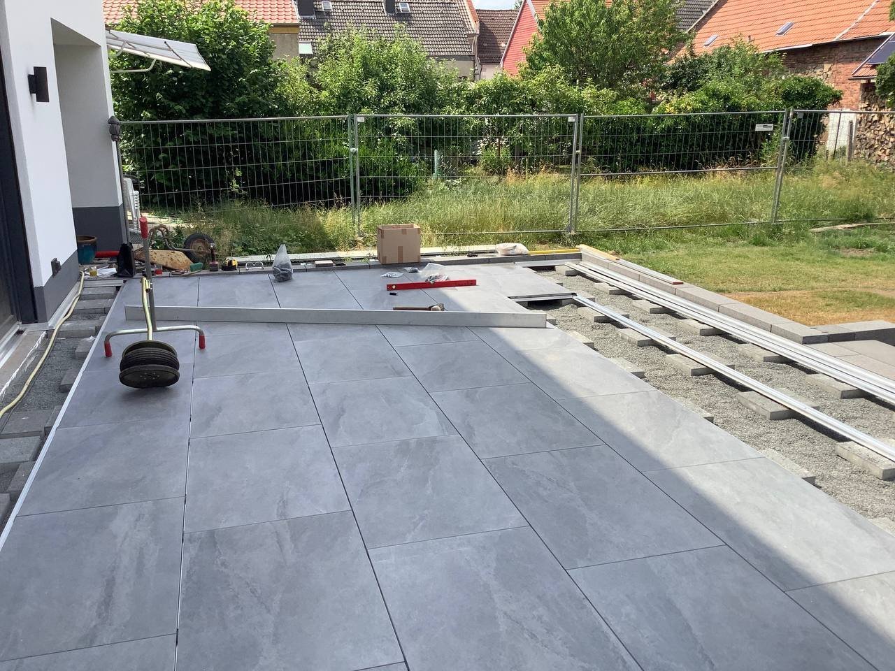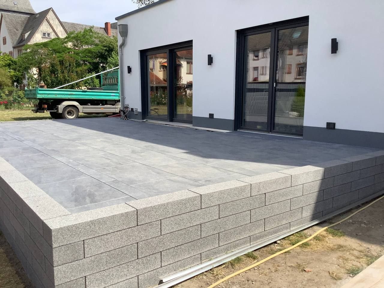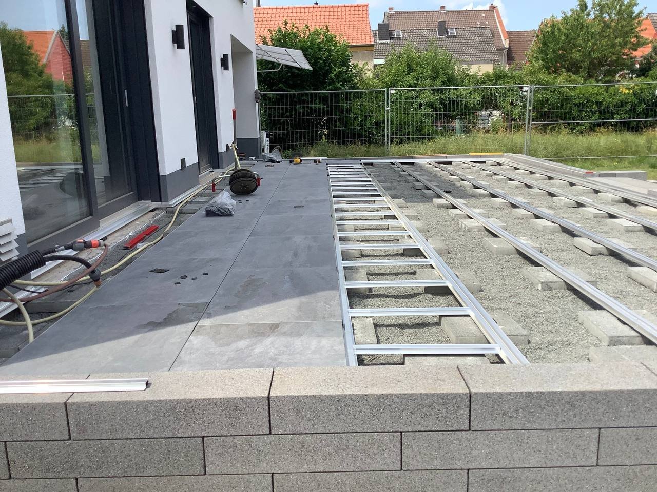 In diesem Beitrag handelt es sich um eine Terrassengestaltung mit Mauerarbeiten. Zu Beginn wurde der Bereich erstellt, auf dem die spätere Terrasse ihren Platz finden sollte. Anschließend wurde die Mauer errichtet, die das hohe Niveau zwischen Hauseingang und dem Gartenbereich überwindet. Die Mauersteine stammen von der Firma Rinn und dabei handelt es sich um die Scona Mauer.Nachdem die Mauer errichtet wurde, begannen die Arbeiten für den Terrassenbelag. Dafür wurde das Talux-Schienensystem von der Firma Talux eingebaut.Das Talux-Schienensystem ist ein Aluminium-Profilsystem, auf dem sich Stein-, Keramik- und kalibrierte Natursteinplatten sowie Holz- und WPC-Dielen einfach, schnell und wirtschaftlich verlegen lassen. Die Anwendungsbereiche sind zahlreich und umfassen u.a. Balkone, Terrassen, Flachdächer, Schwimmbad- und Pooleinfassungen, Dachterrassen und Gehwege. Aber auch individuelle Sonderbauten wie Treppenstufen oder Podeste sind umsetzbar.Nachdem die Konstruktion mit dem Talux-Schienensystem vollbracht war, wurde als Bodenbelag Keramikplatten verlegt. Nach dieser Verlegung war die Terrassengestaltung abgeschlossen und die Kunden konnten somit ihre Terrasse schnell verwenden.