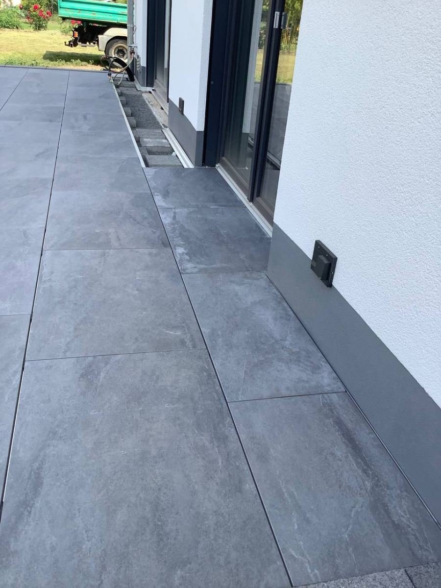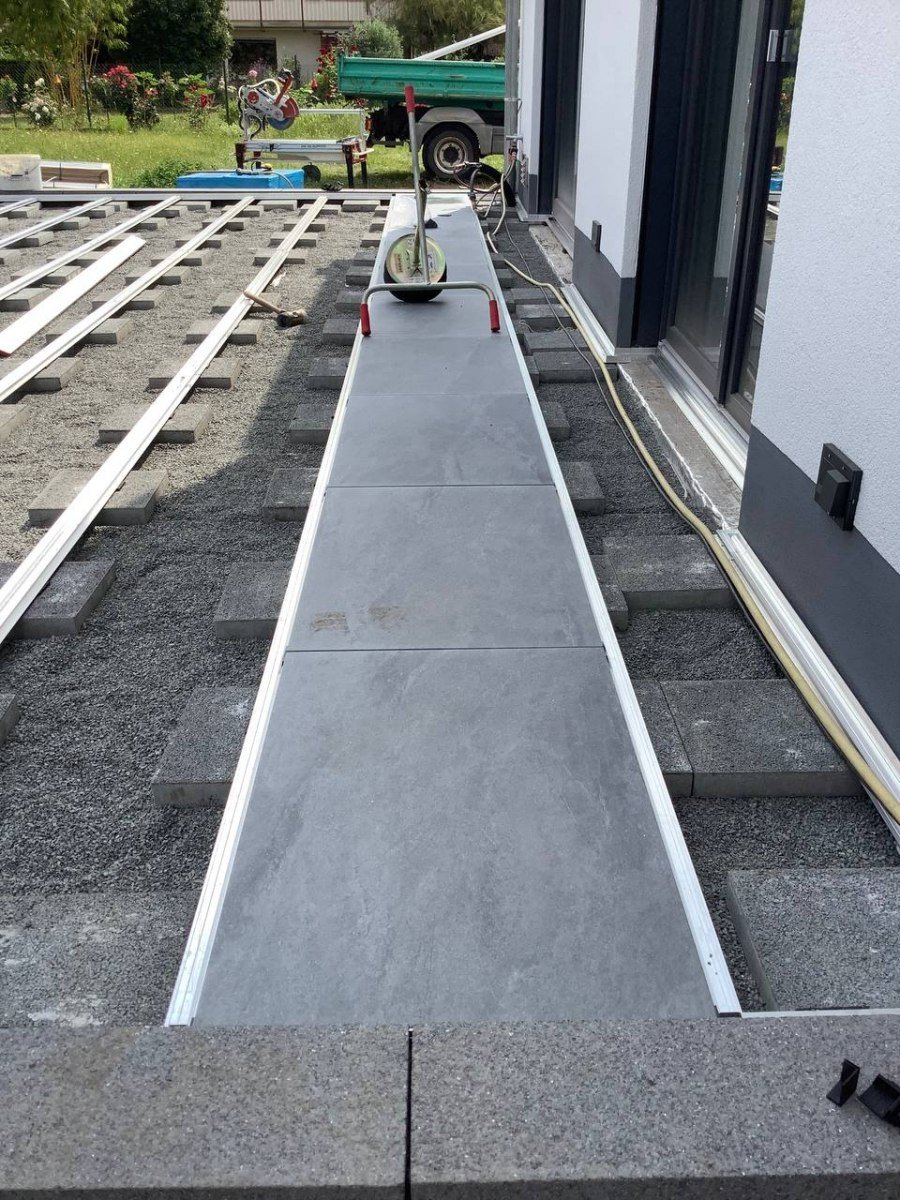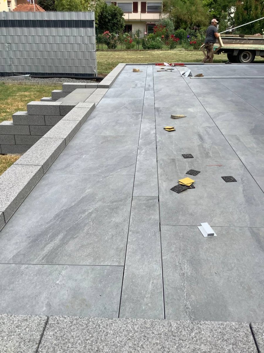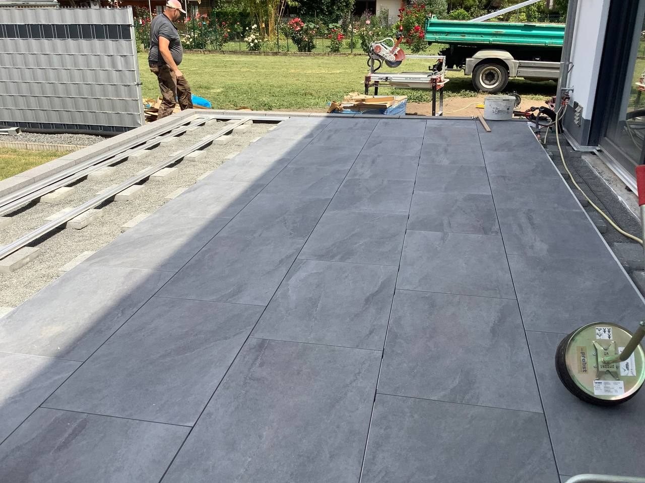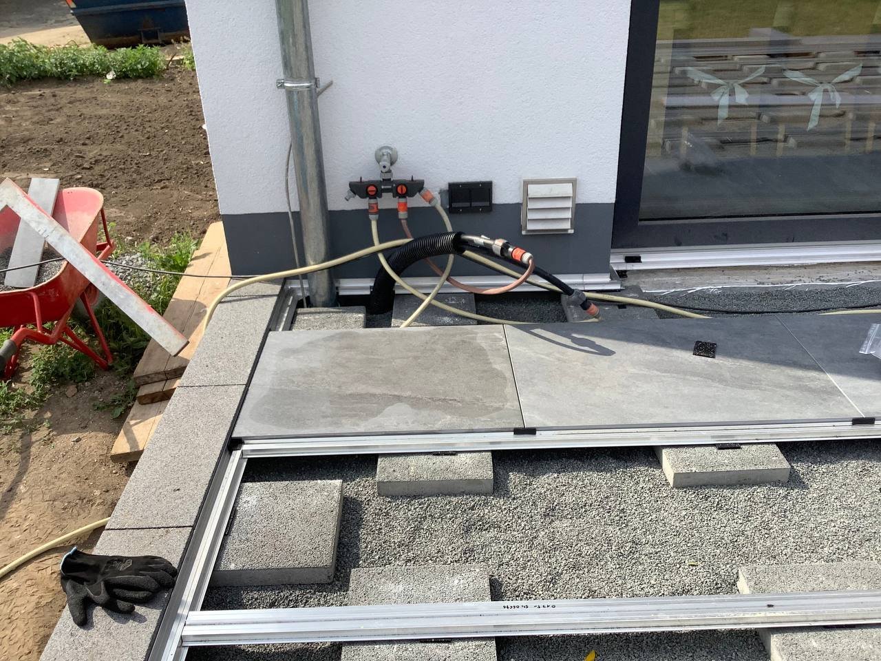 In diesem Beitrag handelt es sich um eine Terrassengestaltung mit Mauerarbeiten. Zu Beginn wurde der Bereich erstellt, auf dem die spätere Terrasse ihren Platz finden sollte. Anschließend wurde die Mauer errichtet, die das hohe Niveau zwischen Hauseingang und dem Gartenbereich überwindet. Die Mauersteine stammen von der Firma Rinn und dabei handelt es sich um die Scona Mauer.Nachdem die Mauer errichtet wurde, begannen die Arbeiten für den Terrassenbelag. Dafür wurde das Talux-Schienensystem von der Firma Talux eingebaut.Das Talux-Schienensystem ist ein Aluminium-Profilsystem, auf dem sich Stein-, Keramik- und kalibrierte Natursteinplatten sowie Holz- und WPC-Dielen einfach, schnell und wirtschaftlich verlegen lassen. Die Anwendungsbereiche sind zahlreich und umfassen u.a. Balkone, Terrassen, Flachdächer, Schwimmbad- und Pooleinfassungen, Dachterrassen und Gehwege. Aber auch individuelle Sonderbauten wie Treppenstufen oder Podeste sind umsetzbar.Nachdem die Konstruktion mit dem Talux-Schienensystem vollbracht war, wurde als Bodenbelag Keramikplatten verlegt. Nach dieser Verlegung war die Terrassengestaltung abgeschlossen und die Kunden konnten somit ihre Terrasse schnell verwenden.